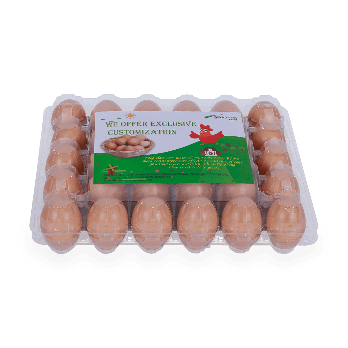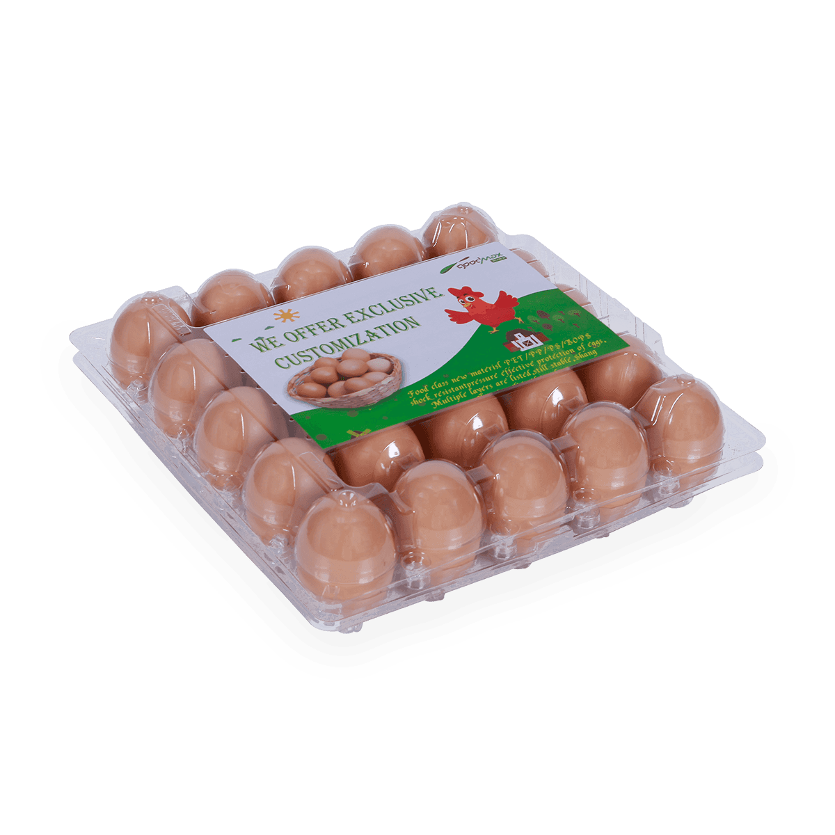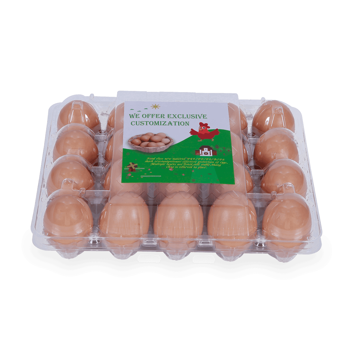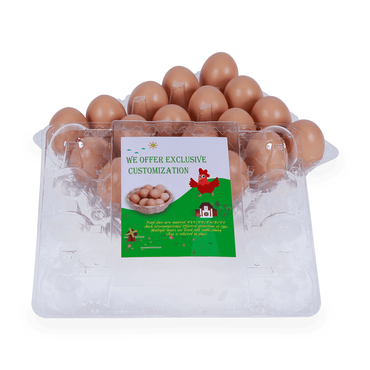 100%可回收的6 12 18 20 24 25個(gè)槽的塑料蛋托是由可回收材料制成的,它可以重復(fù)使用和回收,也可以貼上客戶的商標(biāo)和名稱。