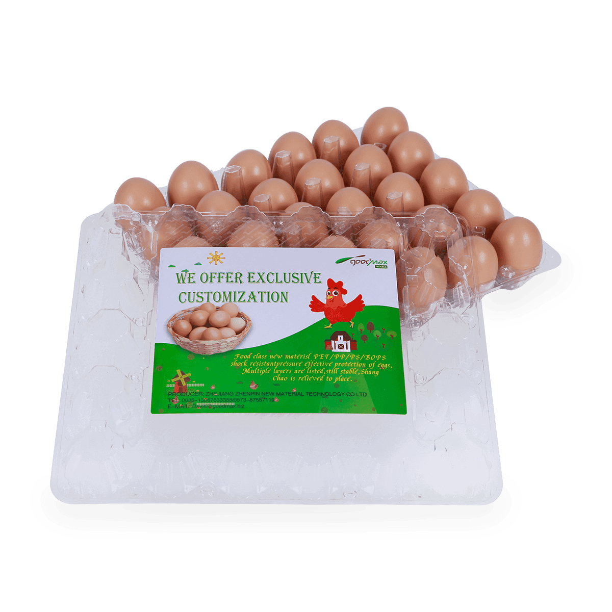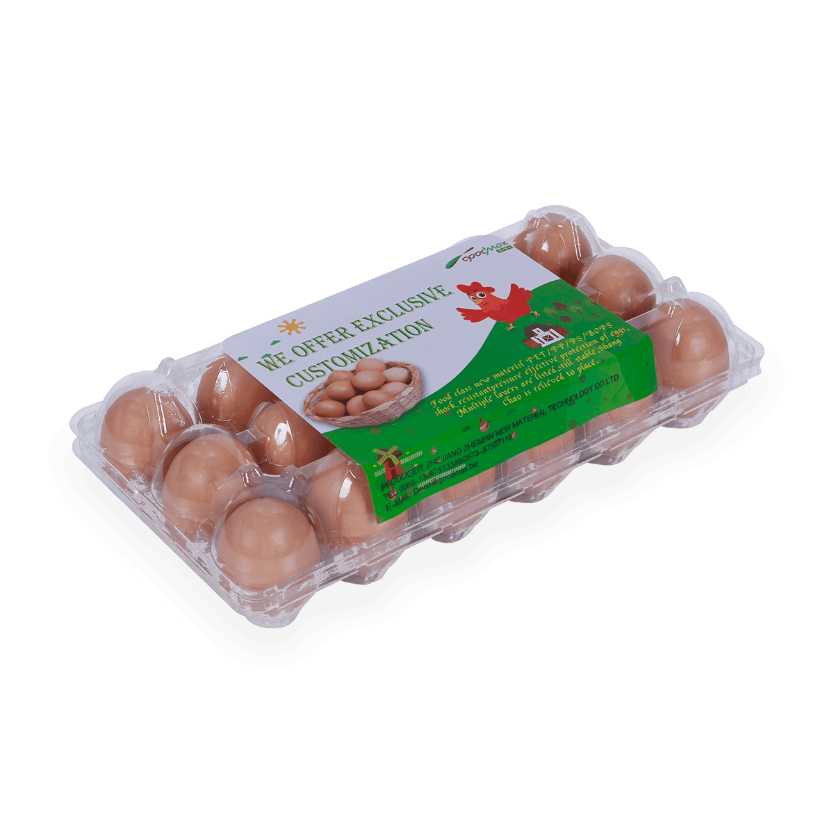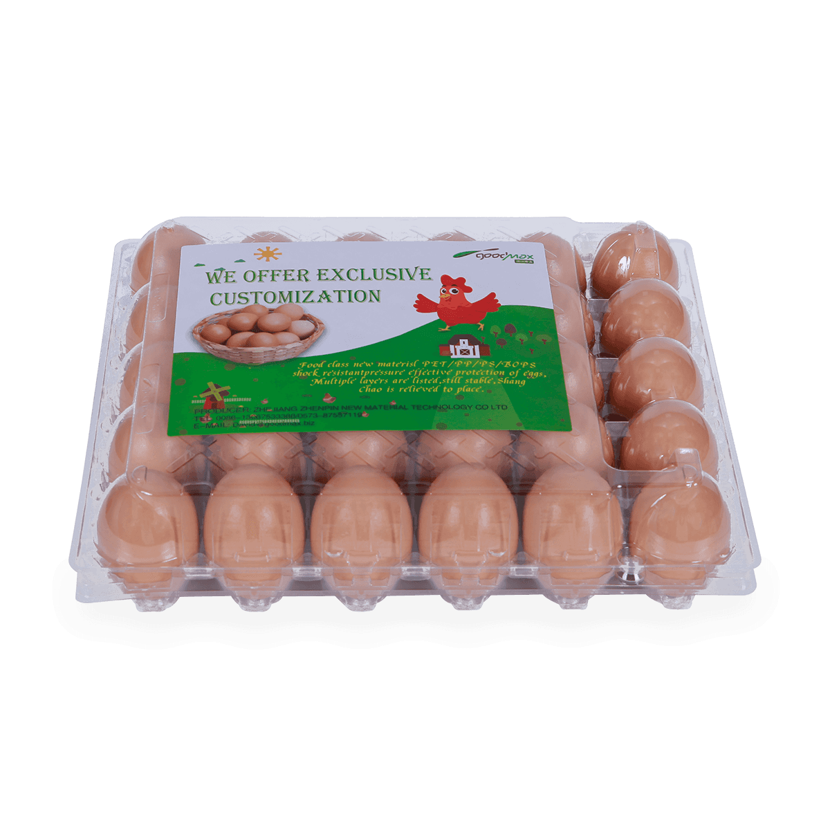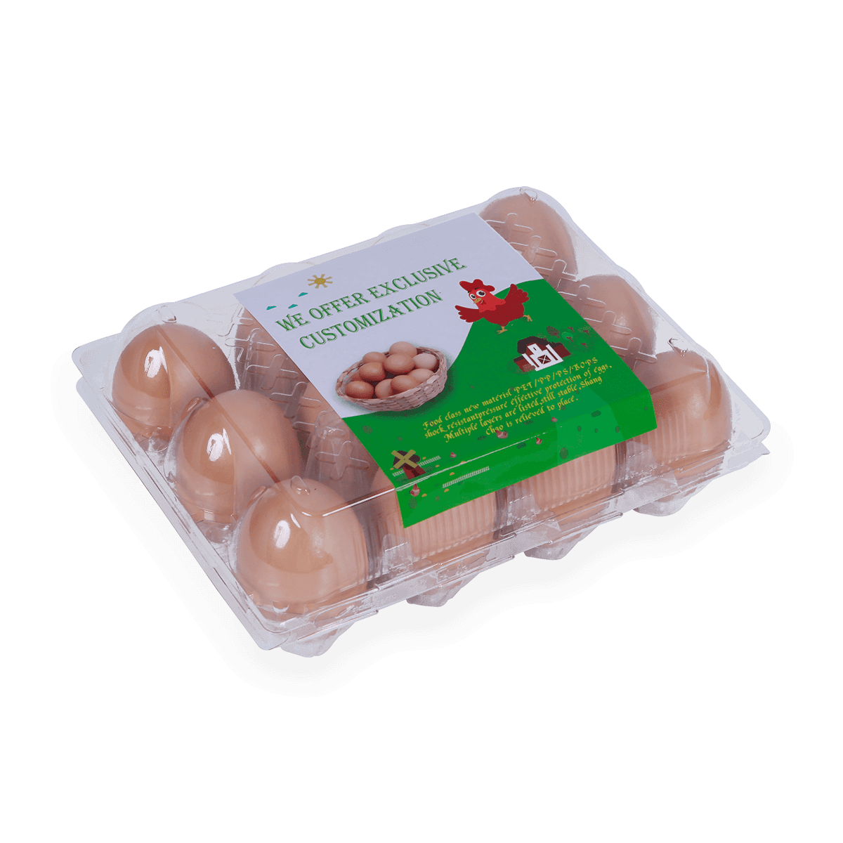 100%可回收的6 12 18 20 24 25個(gè)槽的塑料蛋托是由可回收材料制成的,它可以重復(fù)使用和回收,也可以貼上客戶的商標(biāo)和名稱。