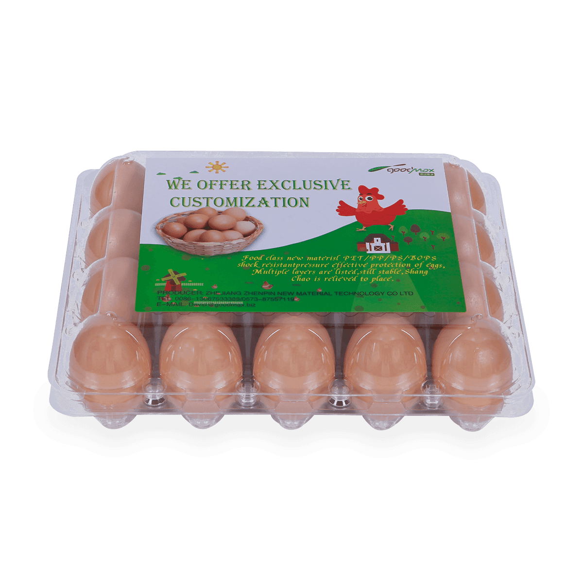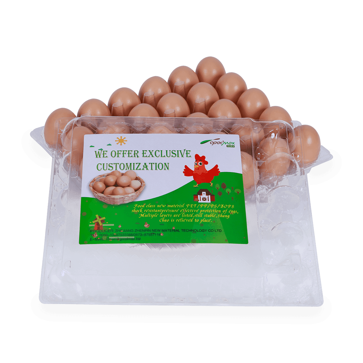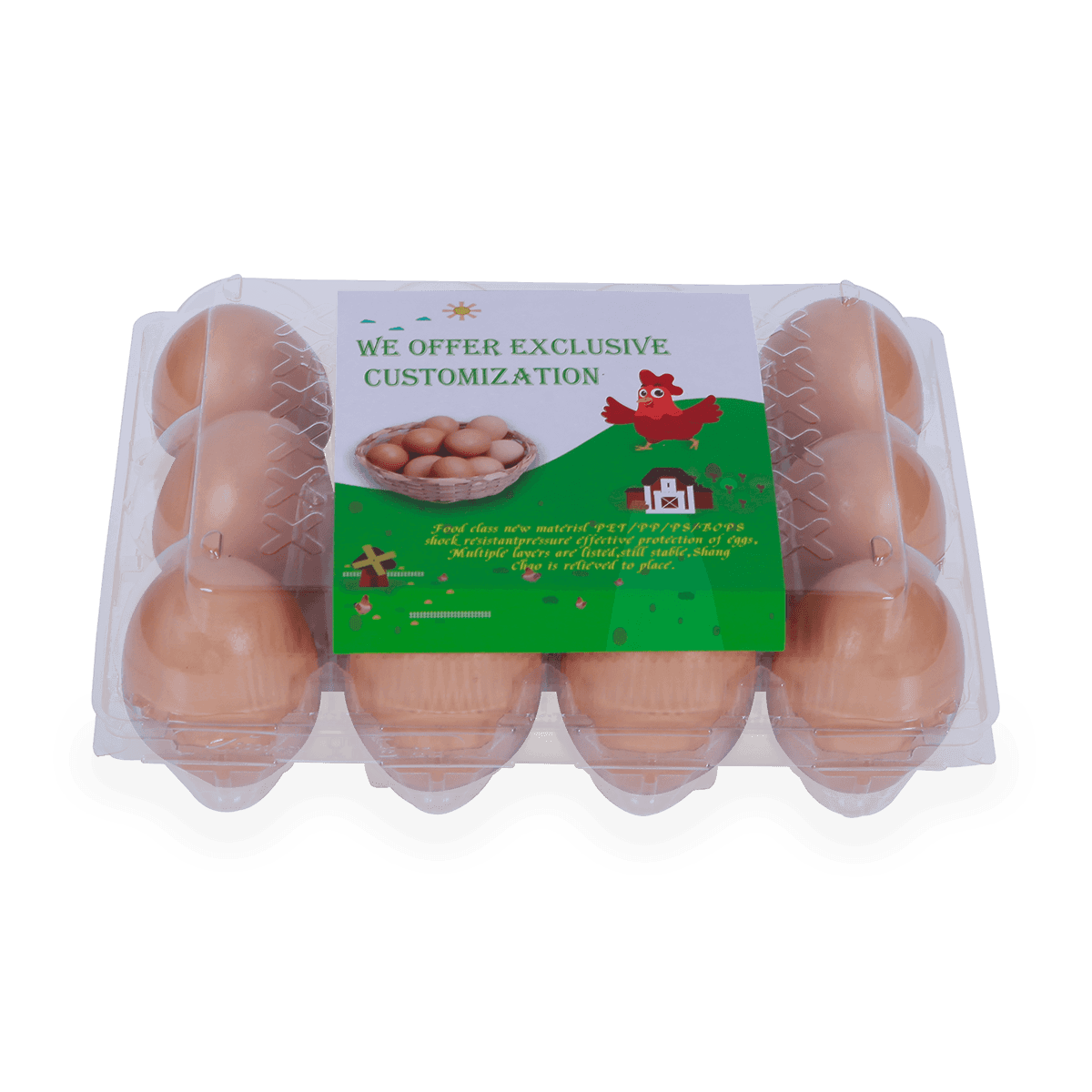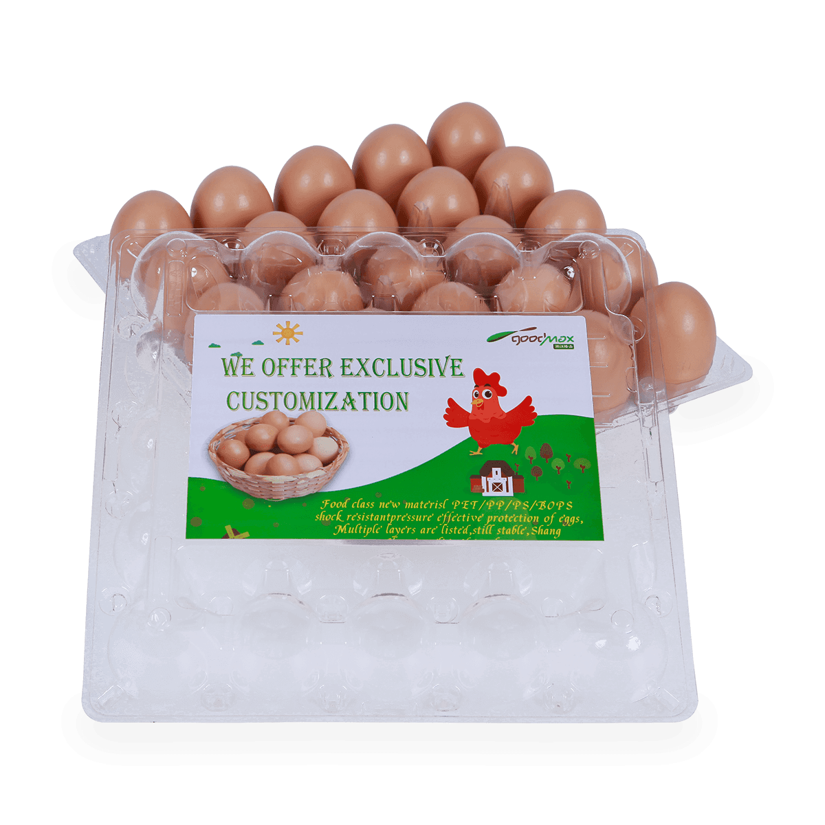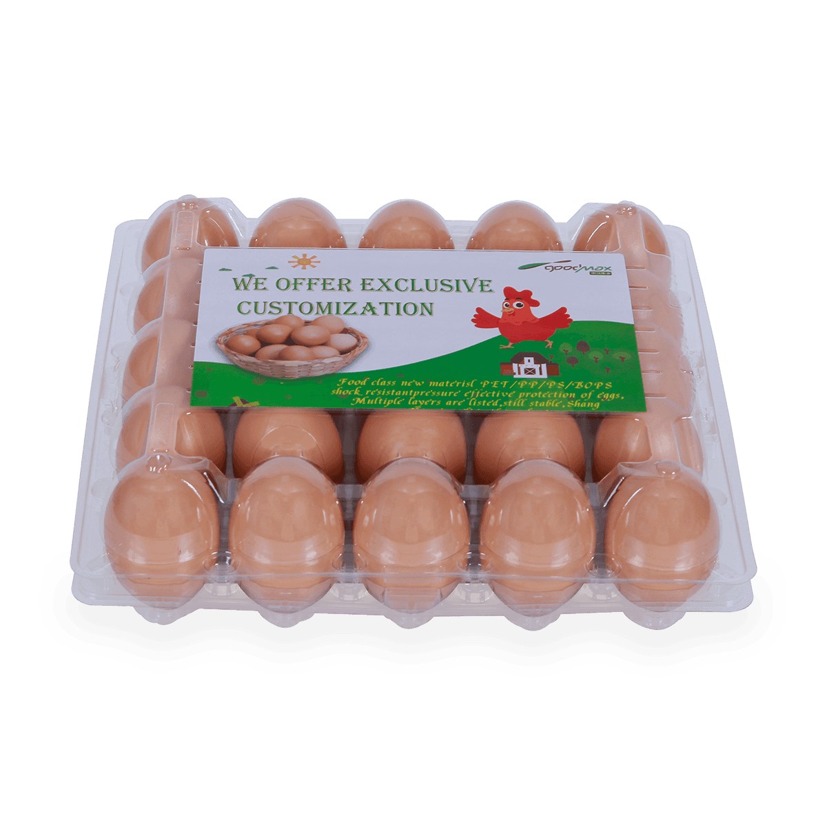 100%可回收的6 12 18 20 24 25個(gè)槽的塑料蛋托是由可回收材料制成的,它可以重復(fù)使用和回收,也可以貼上客戶的商標(biāo)和名稱。