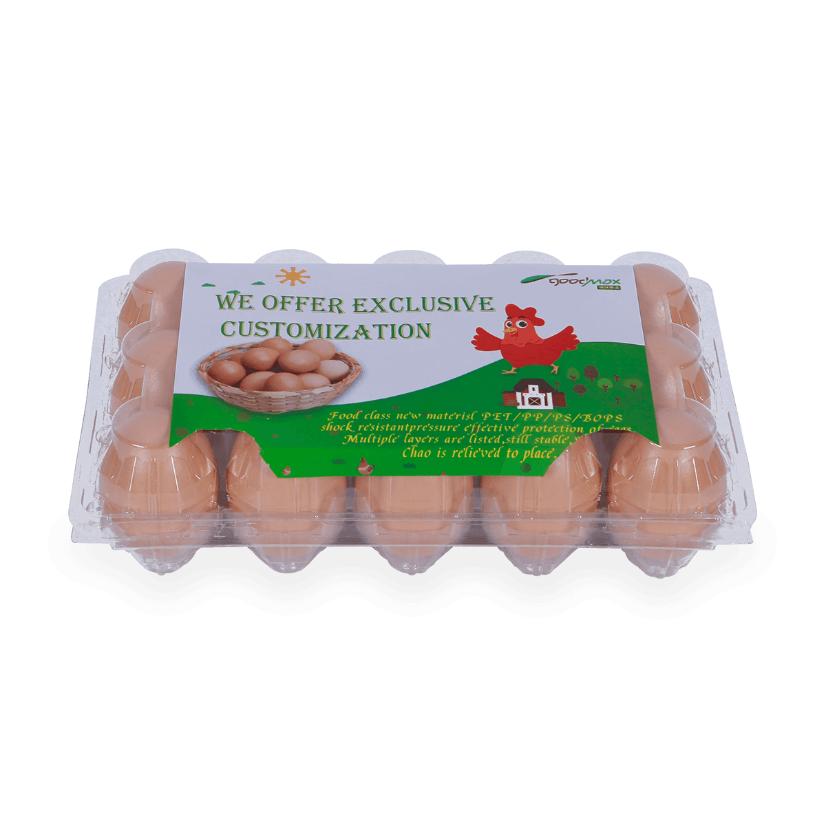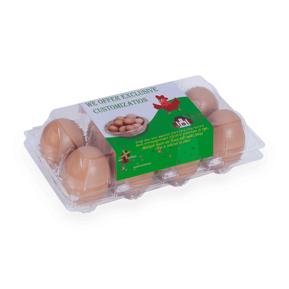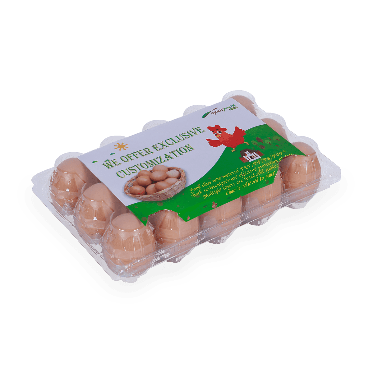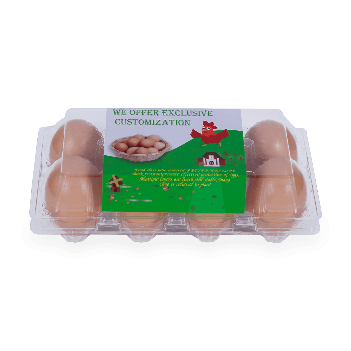 100%可回收的6 12 18 20 24 25個(gè)槽的塑料蛋托是由可回收材料制成的,它可以重復(fù)使用和回收,也可以貼上客戶的商標(biāo)和名稱。