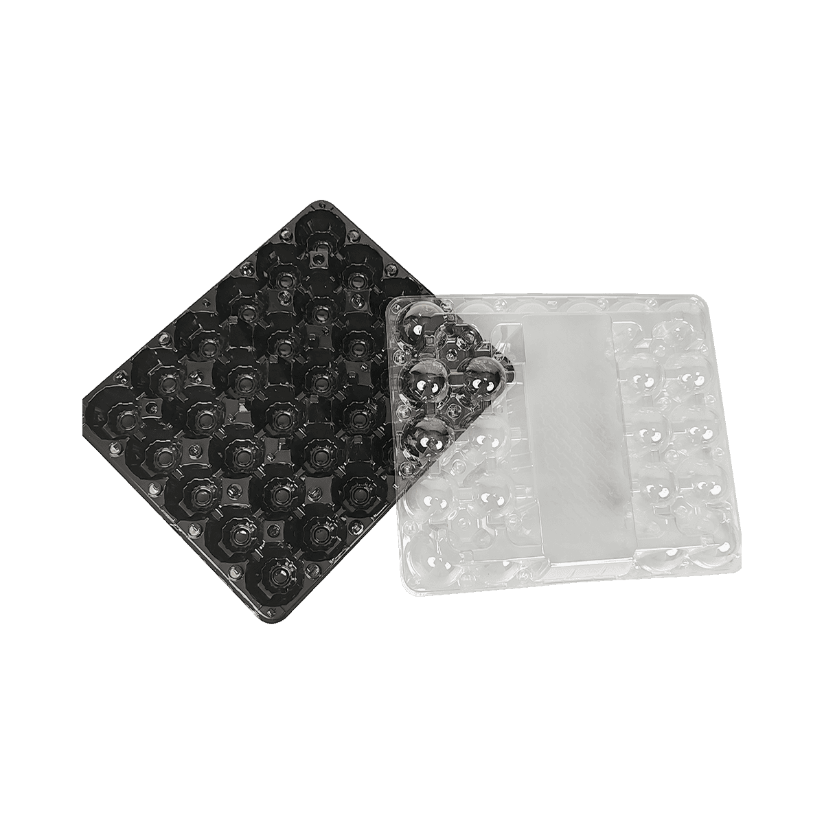 這些雞蛋紙箱由高質量的聚對苯二甲酸乙二醇酯(PET)制成,在不影響強度或耐用性的情況下,優先考慮可持續性。PET以其回收效率而聞名,它確保每個紙箱在使用后都能完全回收,減少浪費,促進循環經濟。這種材料選擇反映了對環境管理的承諾,與有環保意識的消費者和企業的價值觀相一致。