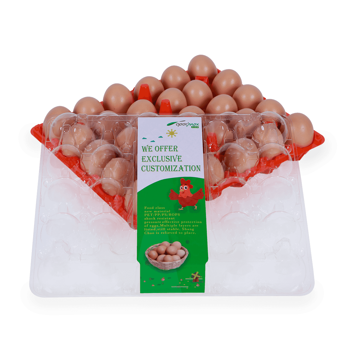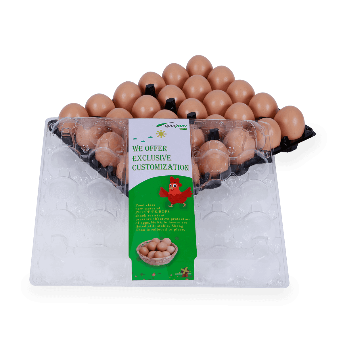 家禽養殖場30孔雞蛋盒廣泛用于家庭供應、超市和家禽養殖場。它具有高清視野、外形和易裝卸的結構,以保證雞蛋的安全和快速包裝。還可以讓雞蛋之間保有距離,更透氣,使雞蛋儲存時間更久。